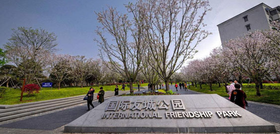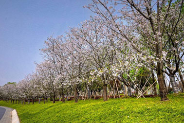國際友成公園旁 / 原名櫻花公園,綠地蜿蜒郁郁蔥蔥,櫻花美景盛放在眼前